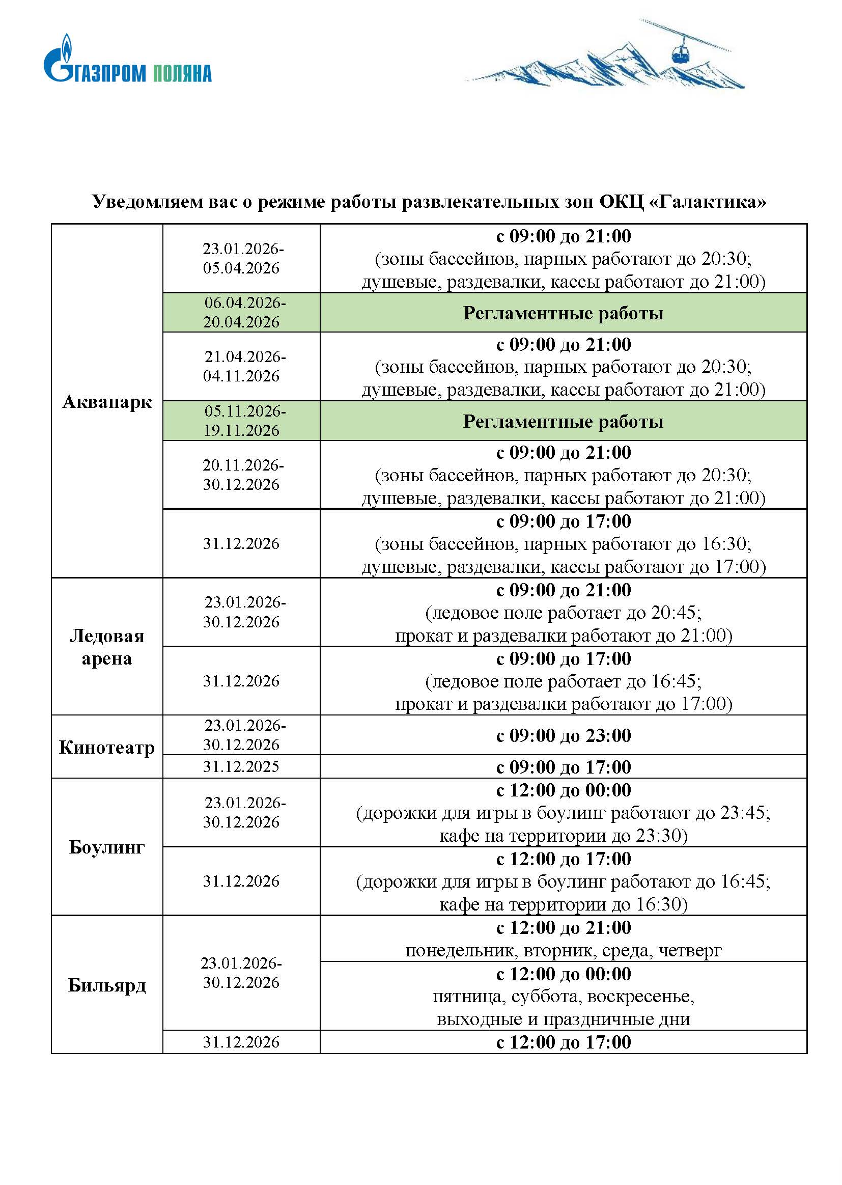 Работы развлекательных зон ОКЦ «Галактика» Курорта Газпром Поляна на 2026 год.